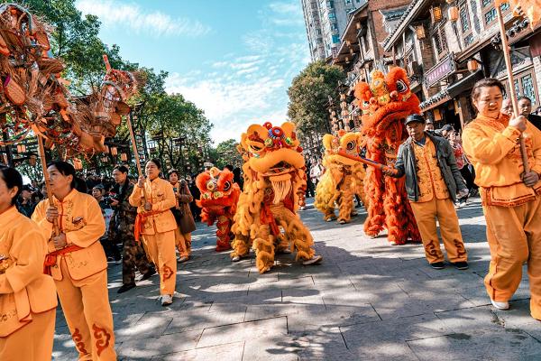 在风气非遗区,衡山渡化身为一座莫得围墙的非遗博物馆。开场跳舞《衡岳竹韵》以非遗油纸伞舞出湖湘风情,随后席草龙与祥狮接踵登场,在搭客的包围中穿梭起舞,引来阵阵喝彩。